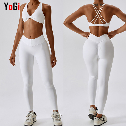 Logo personalizzato Lycra Delle Nuove Donne di Arrivo 2 Pezzo Abbigliamento Palestra U Indietro Reggiseno A Vita Alta Leggings Set De Nylon Yoga formazione Fitness Sport Set